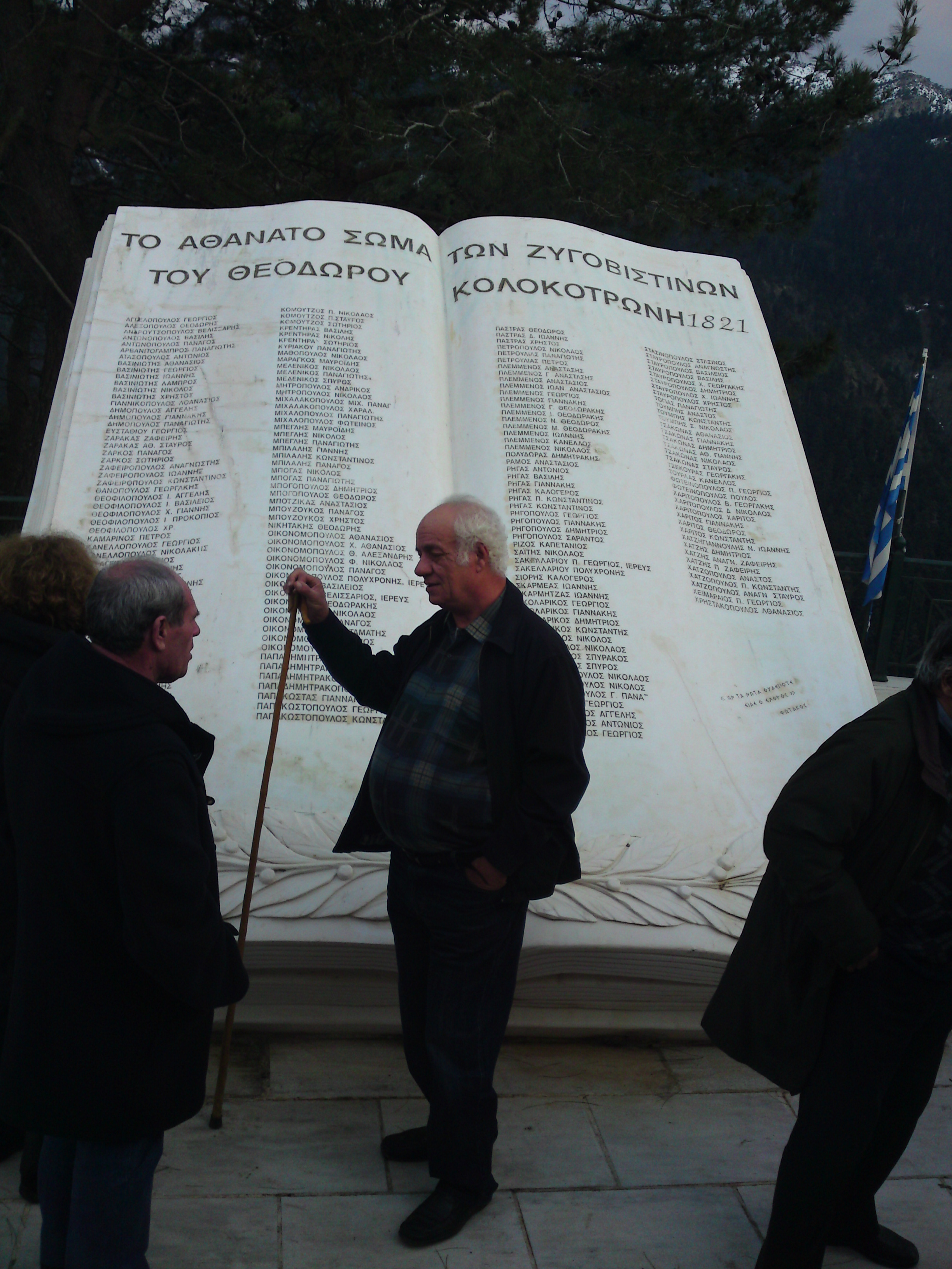 (Από την εκδρομή του Συλλόγου στη Δημητσάνα. Εδώ μπροστά στο μνημείο του χωριού μου, των “Αθανάτων Ζυγοβιστινών του Κολοκοτρώνη”. Φαίνεται και ο αγαπημένος μας εκλιπών Πάνος Μπαλακάκης)