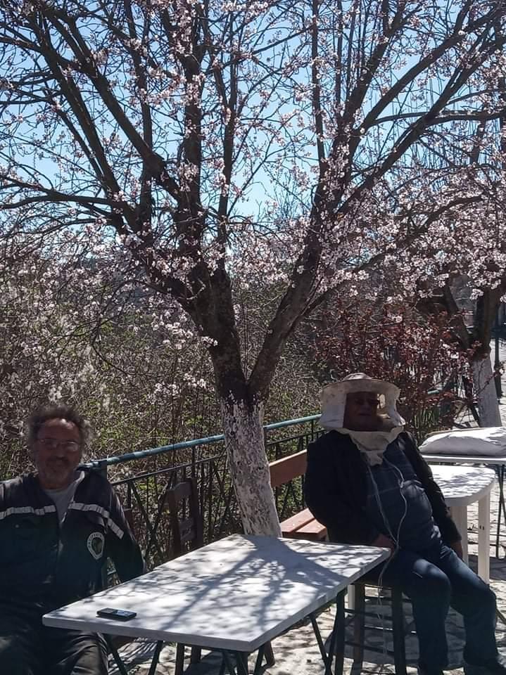(Καλαμπουρτζής πάντα, στη Ζάτουνα, φορώντας το καπέλο του μελισσοκόμου, στην καραντίνα)