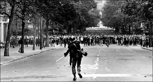 Το απόγευμα η αστυνομία εισβάλλει στο κτίριο. Φτάνουν οι κλούβες της αστυνομίας, στις οποίες επιτίθενται οι φοιτητές με συνθήματα όπως “CRS-SS” (ΜΑΤ ίσον Ες-Ες). Ήταν η αρχή των οδομαχιών, με το πρώτο οδόφραγμα να στήνεται στην πλατεία του Λουξεμβούργου. Οδοφράγματα, πλάκες από τα πεζοδρόμια και κοκτέιλ μολότοφ είναι τα όπλα των φοιτητών εναντίον των δακρυγόνων και των κλομπς των ειδικών σωμάτων της αστυνομίας, των CRS. Η εκκένωση της Σορβόννης γίνεται με βίαιο τρόπο. Οι συλλήψεις φτάνουν τις 600, οι τραυματίες υπερβαίνουν τους 100. Στη λεωφόρο Σεν Μισέλ, όπου βρίσκεται το ιστορικό πανεπιστήμιο, στήνονται οδοφράγματα. Στους δρόμους του Καρτιέ Λατέν, ο Γαλλικός Μάης έχει μόλις αρχίσει.